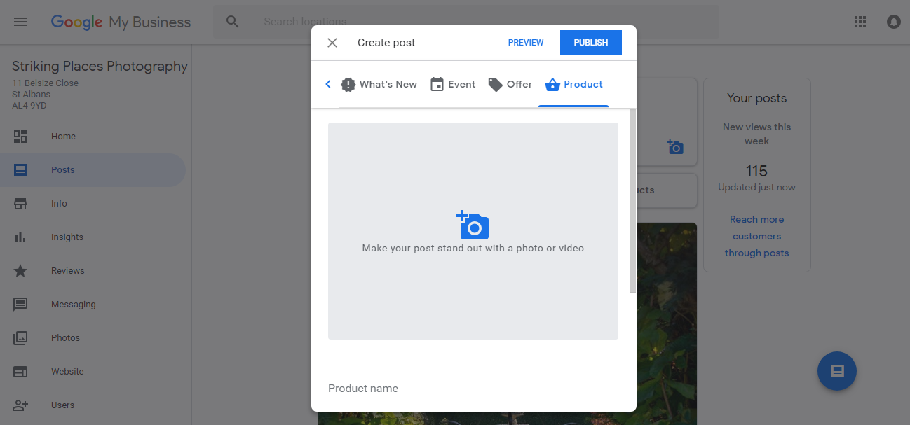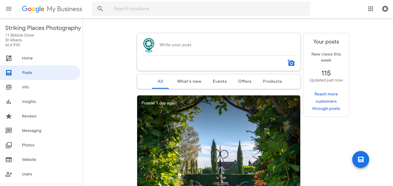 Much like any social media platform, it’s reasonably intuitive if you have already claimed your business and have your logins to your Google account. (Not sure if you have? Go to: https://strikingplaces.com/2017/11/07/google-business-page-posts/ )